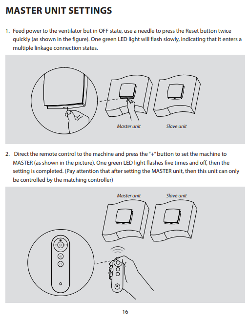 Documentation for download: The complete setup and operation manual can be found on our e-shop: [Wall-mounted heat recovery unit SRJ 3W]. Excerpt from the manual for setting the Master unit.